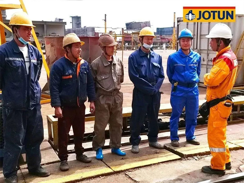 因船型巨大,佐敦為該系列船型派駐了多支由高級(jí)技術(shù)服務(wù)領(lǐng)頭的檢驗(yàn)小組,HPS防污漆統(tǒng)噴時(shí),有多達(dá)6名佐敦涂裝顧問(wèn)在現(xiàn)場(chǎng)提供技術(shù)服務(wù)。